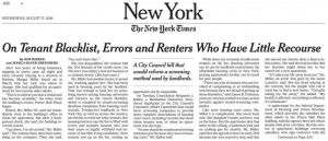 The New York Times covered legislation I introduced in August of 2016 with Public Advocate Letitia James and Manhattan Borough President Gale Brewer, along with support from Assembly Member Daniel O’Donnell and State Senator Liz Krueger. If you have been to housing court whether you won your case or not, you are likely on the Tenant Blacklist. The legislation I introduced ensures that tenant screening companies who create “tenant blacklists” would be regulated and forced to provide fair and complete information, including court records that show when tenants were in the right. The aim is to decrease the number of prospective tenants who are being denied a place to live because they were involved in a housing court case. This bill would go hand in hand with another bill I introduced in 2015 that allows tenants to file complaints with the New York City Commission on Human Rights if they are discriminated against based on housing court information. Under my tenant blacklist bill, screening companies would be required to obtain a license from the Department of Consumer Affairs and pay a fine for inaccurate reporting. Anyone who believes they have been harmed by an inaccurate screening report could bring their own case in court. Learn more by reading the release or checking out the coverage by DNAinfo, Real Deal, Curbed, and the New York Times.