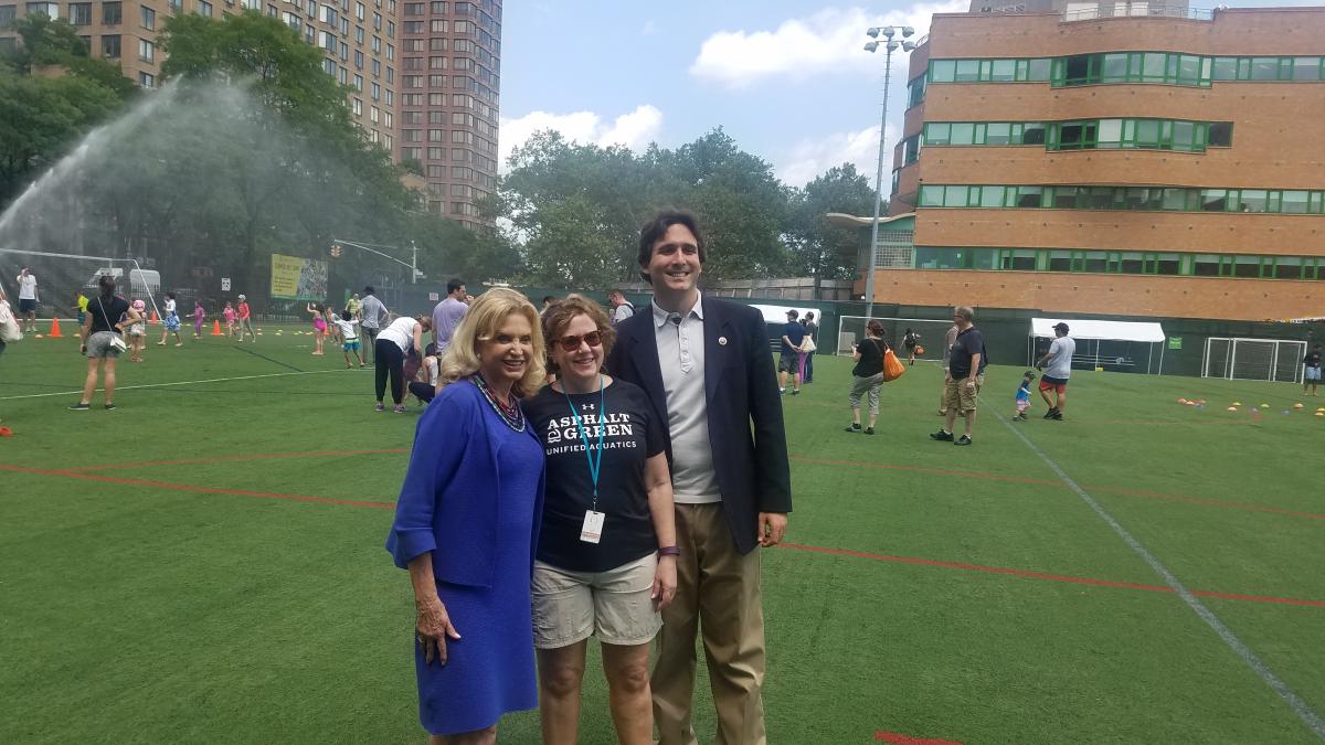I am proud to sponsor Asphalt Green’s Sprinkler Day where we turn on our sprinklers and turn our green turf field into a waterpark for the day. Executive Director Maggy Siegel and Congress Member Maloney and I enjoyed talking to neighbors and cooling off under the sprinkler.