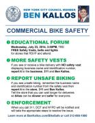 A Commercial Bike Safety program launched following an educational forum for all businesses in the district in coordination with the Department of Transportation and New York Police Department (NYPD), is empowering residents with the following plan of action: